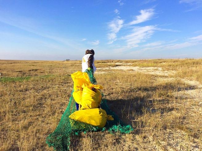 Hard work done: 17 Müllsäcke, vier Fischkisten, zwei Netze und noch ein bisschen anderen Kram haben wir heute mit fünf Leuten vom Strandwall geholt und gut 1.5 Kilometer durch die Salzwiese geschleppt. Das fühlt sich jetzt nach Muskelkater an…