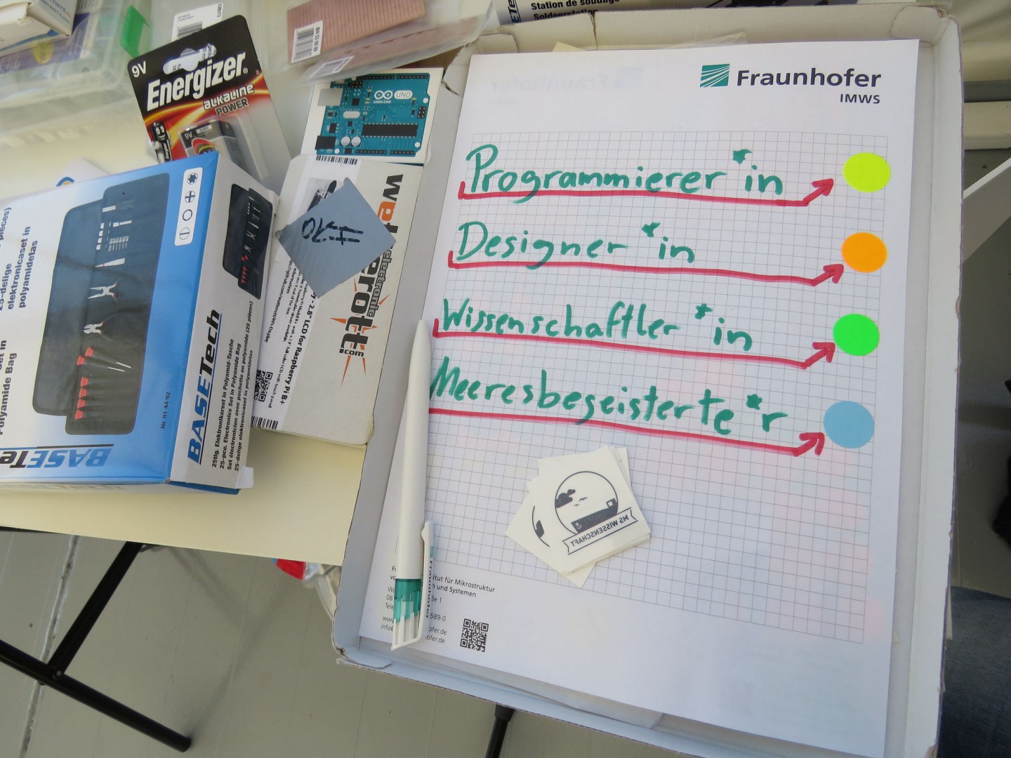 Es hat richtig Spaß gemacht, in diesem Team zu arbeiten. Am Sonntag Nachmittag wurden alle Projekte der Ozeanwerkstatt vor einer Jury präsentiert und nach den Kriterien Kreativität, Sinnhaftigkeit/Nachhaltigkeit und Nähe zum Thema Meere und Ozeane bewertet. Und unser App-Konzept hat dabei den ersten Platz gemacht. Wir haben die "Goldene Kieler Sprotte" gewonnen! Yippie! Nun gilt es, dafür zu sorgen, dass ihr diese App auch hoffentlich bald im AppStore findet.